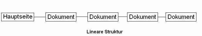 Der Nutzer „blättert“ durch die Webseiten von vorne nach hinten durch. Dies ähnelt einem Rundgang. Es empfiehlt sich allerdings diese Form nur bei kleinen Webseiten zu verwenden, da dann keiner ausgereiften Navigation bedarf.